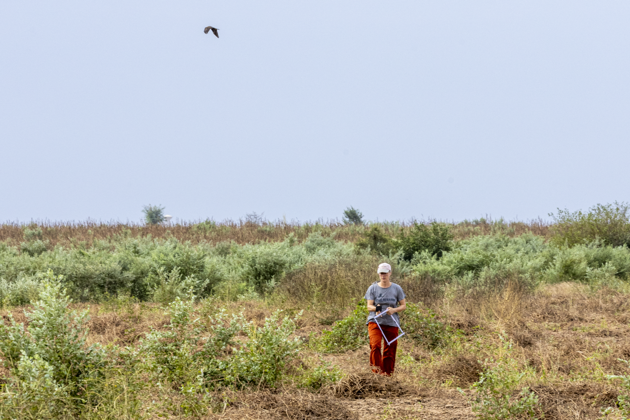 Meten grauwe kiekendief vrouw Esther © Wim Mullié