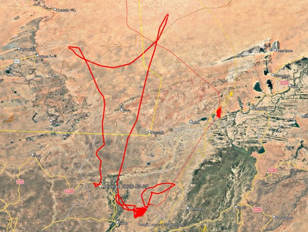 SadioMane en Albert zijn half maart eveneens van de radar verdwenen, en vermoedelijk nog bezig met hun oversteek van de Sahara. Wat ook interessant is, is dat MameFatou en Gilbert wel een stuk naar het Noorden zijn gevlogen, maar zijn blijven hangen in Noord-Senegal en Zuid-Mauritanië. Dat terwijl we normaal gesproken de tendens zien van vogels om steeds verder naar het Zuiden af te zakken wanneer de noordelijke gebieden steeds droger worden in de loop van de winter. Ook Herman heeft een gekke bokkesprong gemaakt, waarbij hij leek te aarzelen om de Sahara over te steken, maar inmiddels is hij weer terug in Mali.